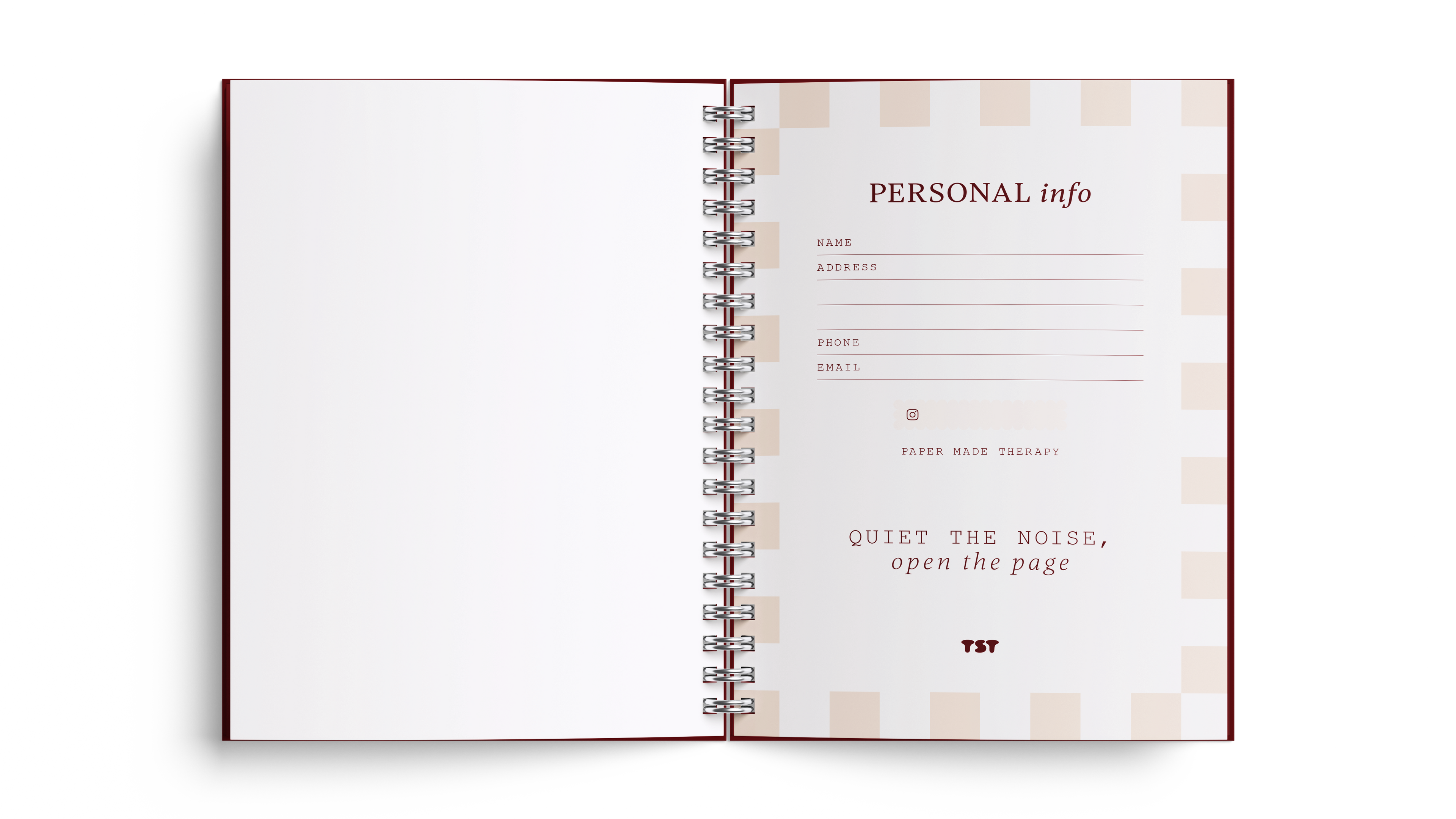 En TST creemos que escribir es un acto de bienestar. Por eso diseñamos productos de papel que se sienten como una pausa: espacios simples, estéticos y amables donde puedes ordenar tu mente, soltar lo que pesa y conectar contigo. Nuestra intención es convertir cada página en una pequeña terapia diaria —un ritual que te acompaña, te calma y te ayuda a vivir con más claridad, propósito y ligereza.